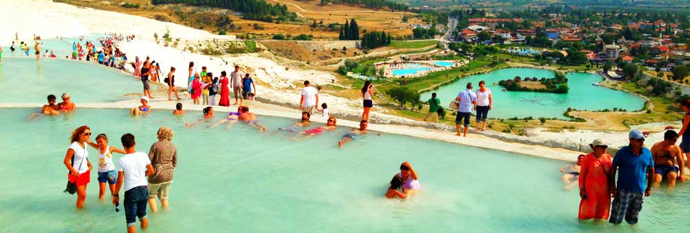 Tour Highlights : Red Water Hot Springs. In Hierapolis Antique City, Necropolis, Roman Baths, Domitian Gate, Latrina, Oil Factory, Frontinious Street, Agora, Byzantium Gate, Triton Fountain, Cathedral, Apollon Temple, Plutonium, Theater, Antique Pool and Pamukkale white terraces.